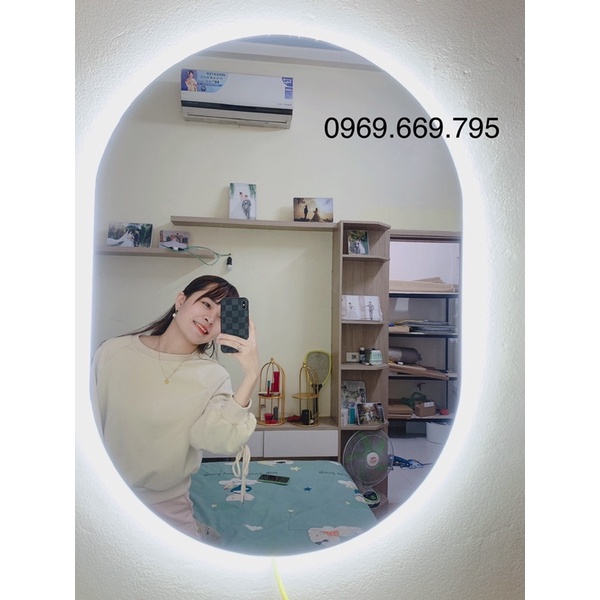 Nhà cửa & Đời sống > Trang trí nhà cửa > Gương || Gương nhà tắm bầu dục LED 50x70 cao cấp , Gương tròn treo tường Led D50 D60cmCòn hàng