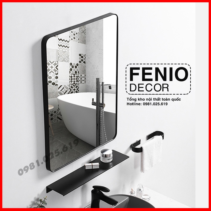 Gương nhà tắm viền khung thép sơn tĩnh điện màu đen gương treo tường phòng tắm hình chữ nhật