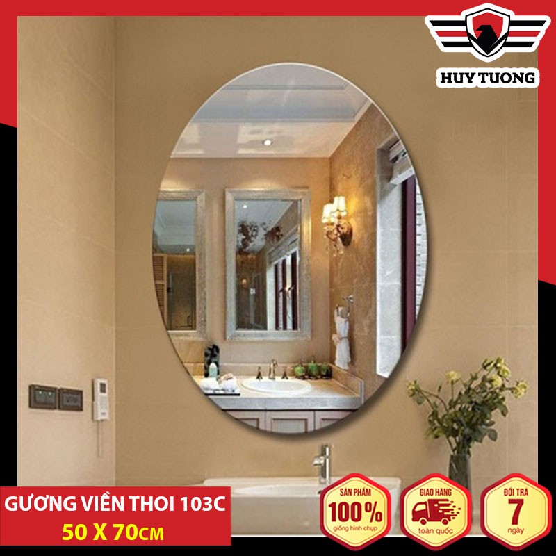 Gương nhà tắm viền thoi viền tròn treo tường Tấn Phát, gương nhà tắm soi mặt trang điểm cao cấp - Huy Tưởng