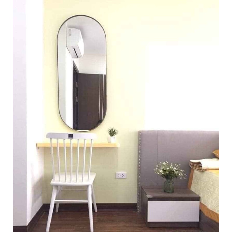 Gương oval hình con nhộng treo tường viền thép đen vàng trắng phòng tắm bàn trang điểm trang trí nhà cửa Gương Decor