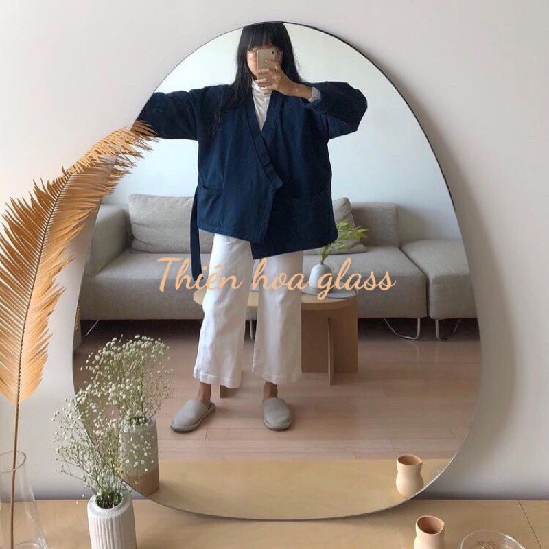 Gương quả trứng phong cách hàn quốc gương trang điểm để bàn tràn viền kích thước tùy chọn trang trí nhà cửa