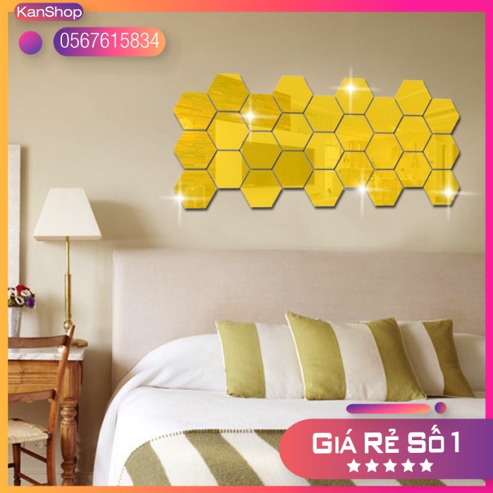Gương Soi Dán Tường Lục Giác Trang Trí Nội Thất Tiện Lợi Dễ Dàng Lắp Đặt 23*26,5*13,2cm Tặng Kèm Miếng Dán Sau Lưng