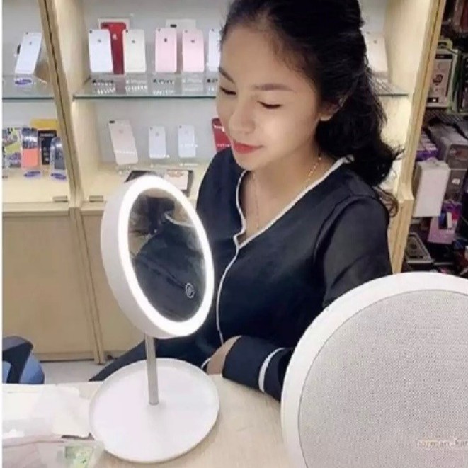 GƯƠNG SOI để bàn có đèn nha quá tiện lunnnn 😘😘Ánh sáng 3 màu ạ. Có 2 loại ánh sáng nấc chỉnh tuỳ c e chỉnh nha.