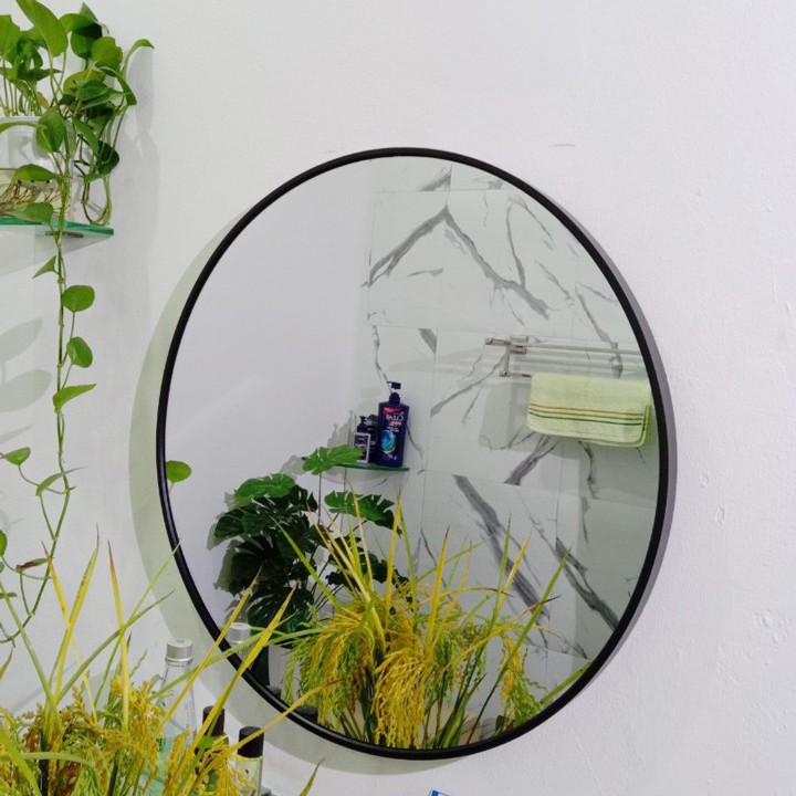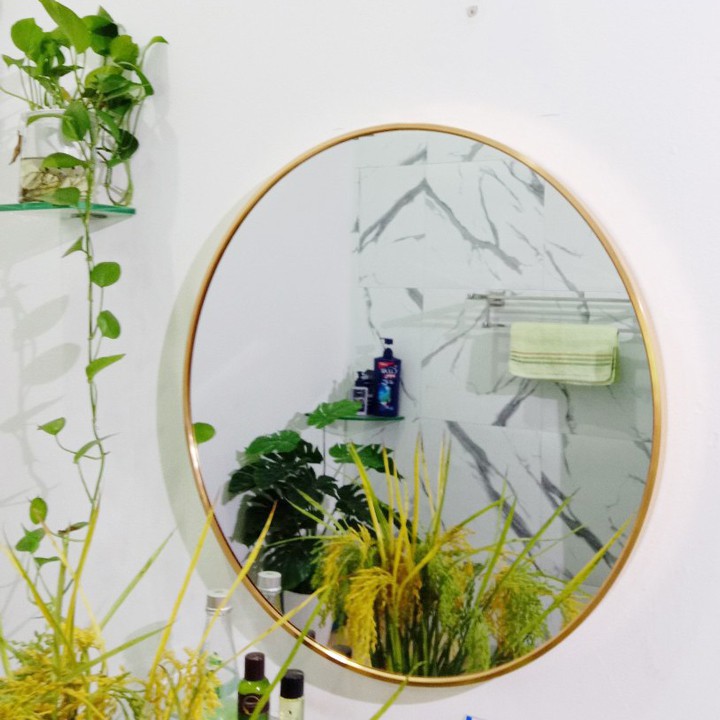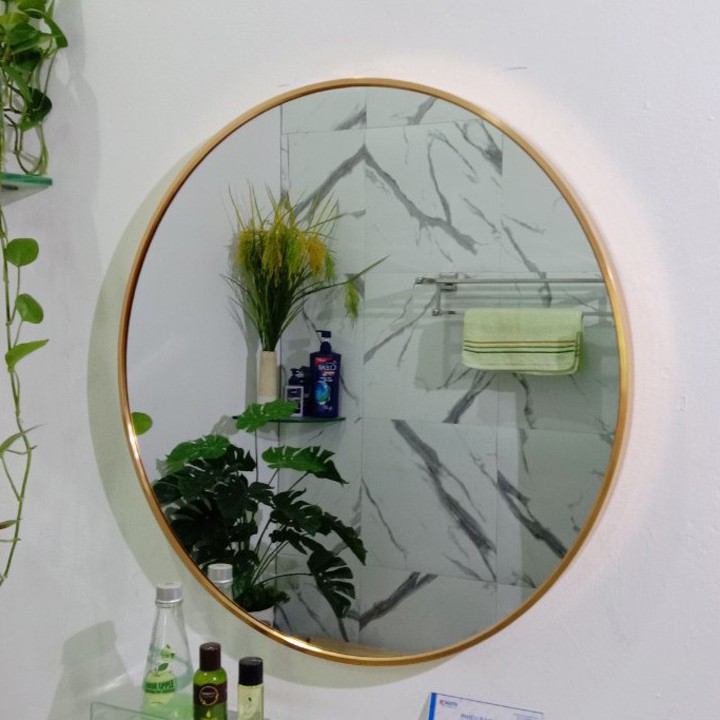 - Gương Soi Hình Tròn Khung Viền Nhôm Sơn Tĩnh Điện- Màu: Vàng Đồng, Đen
