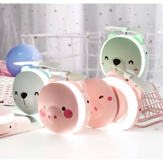 Gương soi kèm quạt và đèn cute 3 in 1 siêu xinh