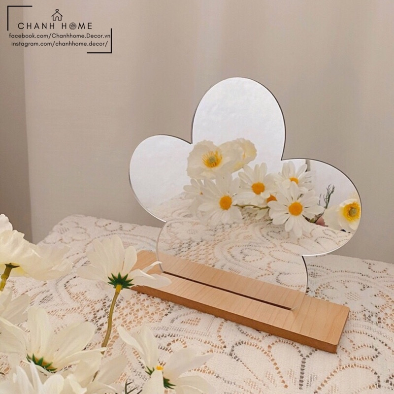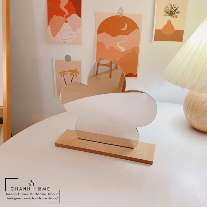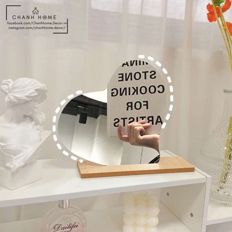 - Gương đế gỗ để bàn cao cấp phong cách Hàn Quốc, xinh xắn bạn có thể dùng để decor căn phòng của mình.
