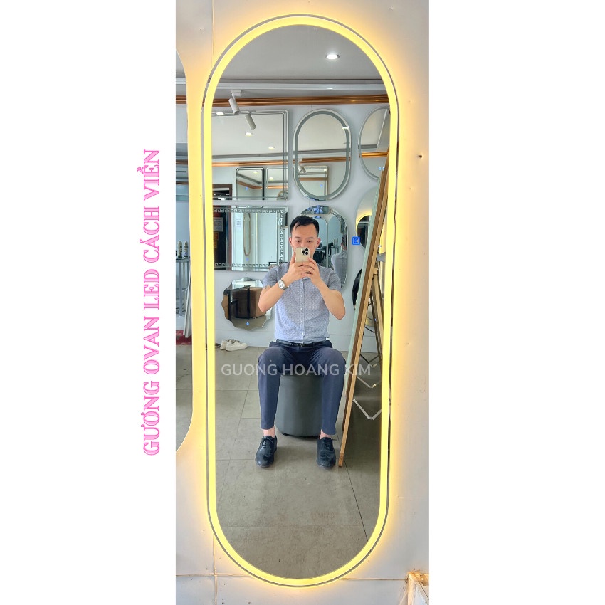Nhà cửa & Đời sống > Trang trí nhà cửa > Gương || gương soi toàn thân có đèn led cảm ứng, gương toàn thân treo tường hình bầu dục kích thước 50x160cm guonghoangkim HK1010Còn hàng