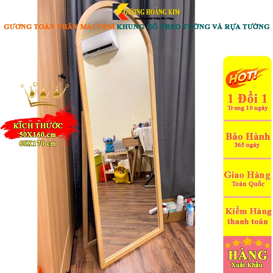 Nhà cửa & Đời sống > Trang trí nhà cửa > Gương || Gương soi toàn thân đèn led khung gỗ mái vòm có chân di động dựa tường treo tường giá rẻ - guonghoangkim mirror KG0001Còn hàng