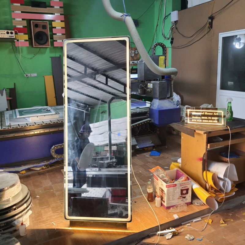 Chất liệu gương: Phôi gương Bỉ tráng bạc cho hình ảnh trong, đẹp.Led có 3 màu ánh sáng trắng và vàng và trung tính. ngoài ra quý khách có thể đặt màu theo sở thích.