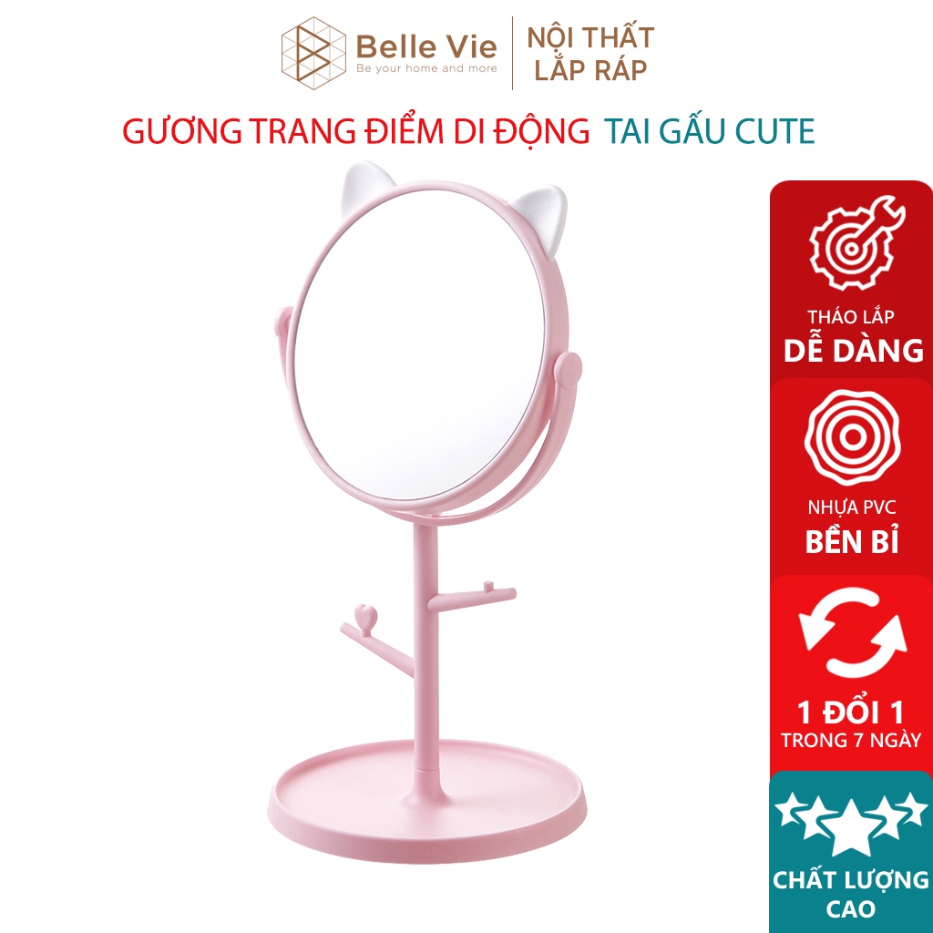 Gương Soi Trang Điểm BELLEVIE Gương Di Động Để Bàn Tai Gấu Gương MakeupTHÔNG SỐ :