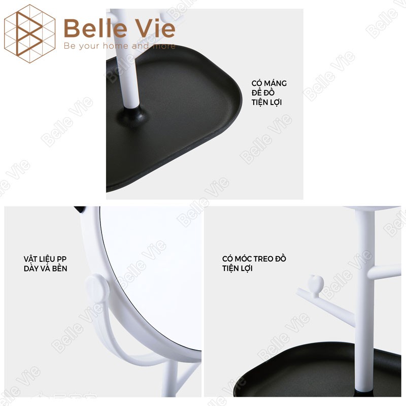 + Thân gương trang điểm tạo hình thành nhiều nhánh có thể treo vòng tay, dây buộc tóc, phụ kiện thời trang