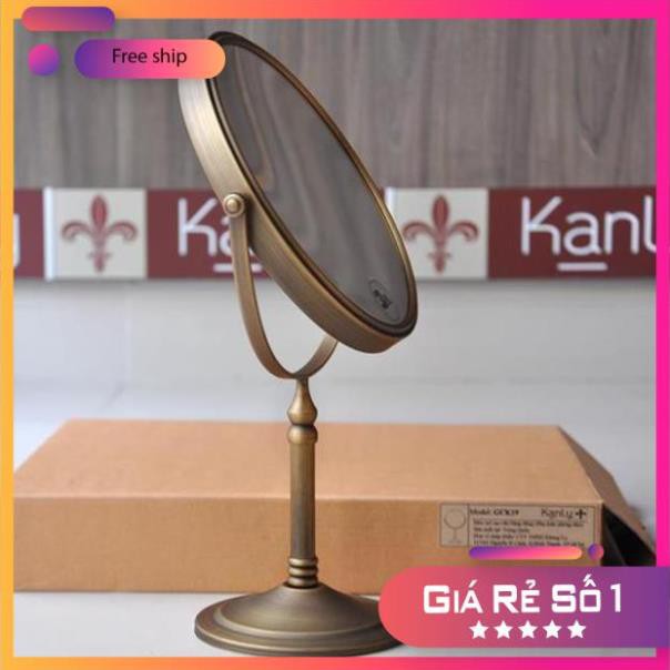 Gương soi trang điểm để bàn 2 mặt phóng to x3 lần bằng đồng Kanly GCK19, kiếng để bàn phòng tắm phong cách châu âu
