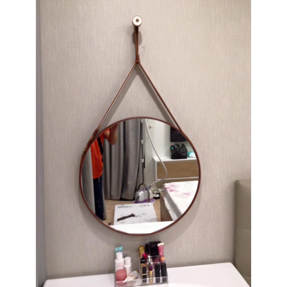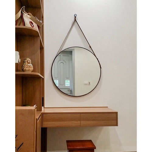 Gương Soi Tròn Treo Tường Dây Da Giá Xưởng, có màu đen và nâu vàng da bò, mặt đủ size 40cm và 50cm