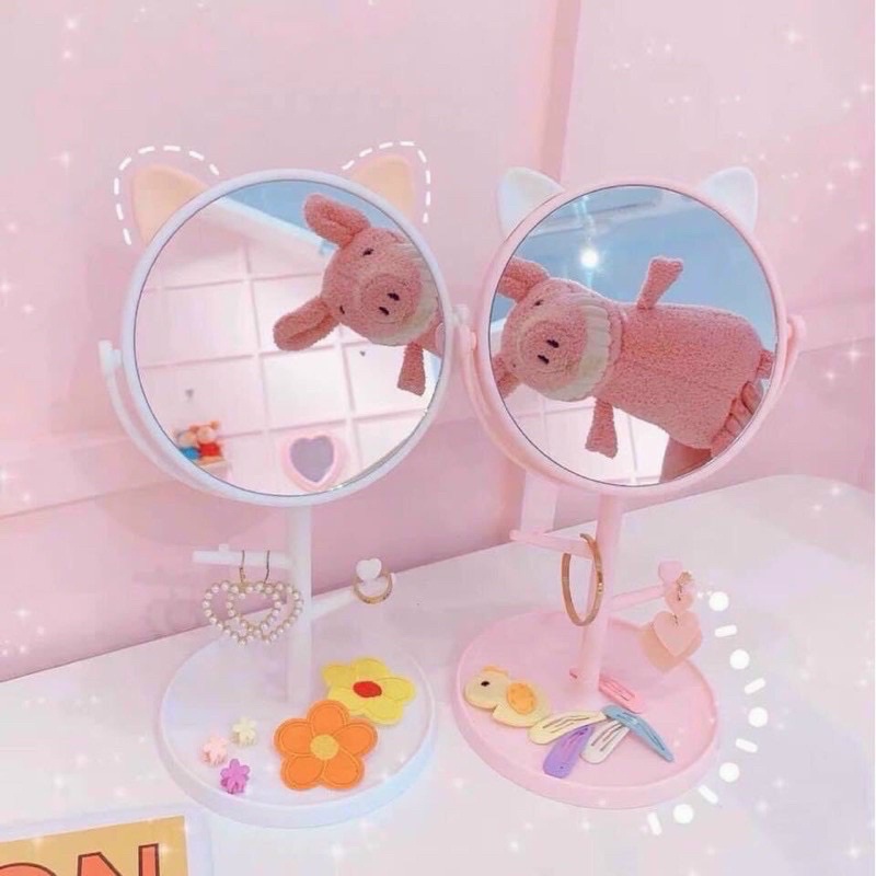 Nhà cửa & Đời sống > Trang trí nhà cửa > Gương || Gương tai mèo công chúa để bàn [SIÊU XINH] có khấc và khay để phụ kiện cực tiện dụngCòn hàng