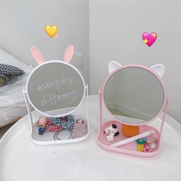 Gương tai mèo để bàn trang điểm làm đẹp- Decor bàn trang điểm, kiếng soi phong cách Hàn Quốc tiểu thư[ ảnh thật]