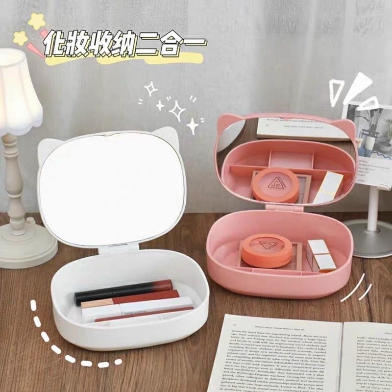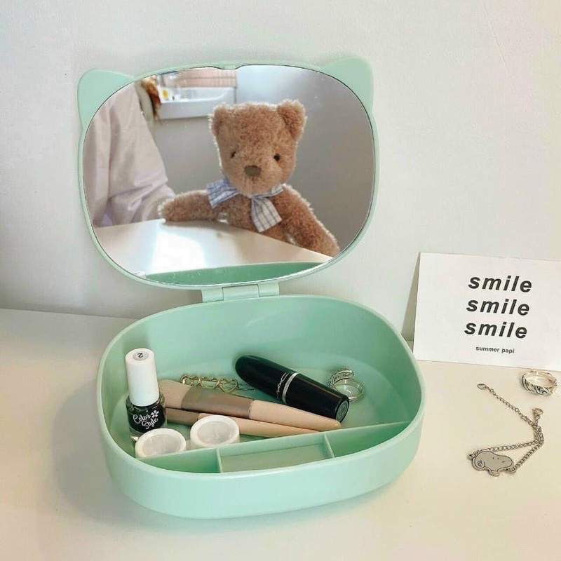 GƯƠNG TAI MÈO KÈM HỘP ĐỰNG MỸ PHẨM TRANG SỨCRẺ VÔ ĐỊCHDỄ THƯƠNG XINH XẮN