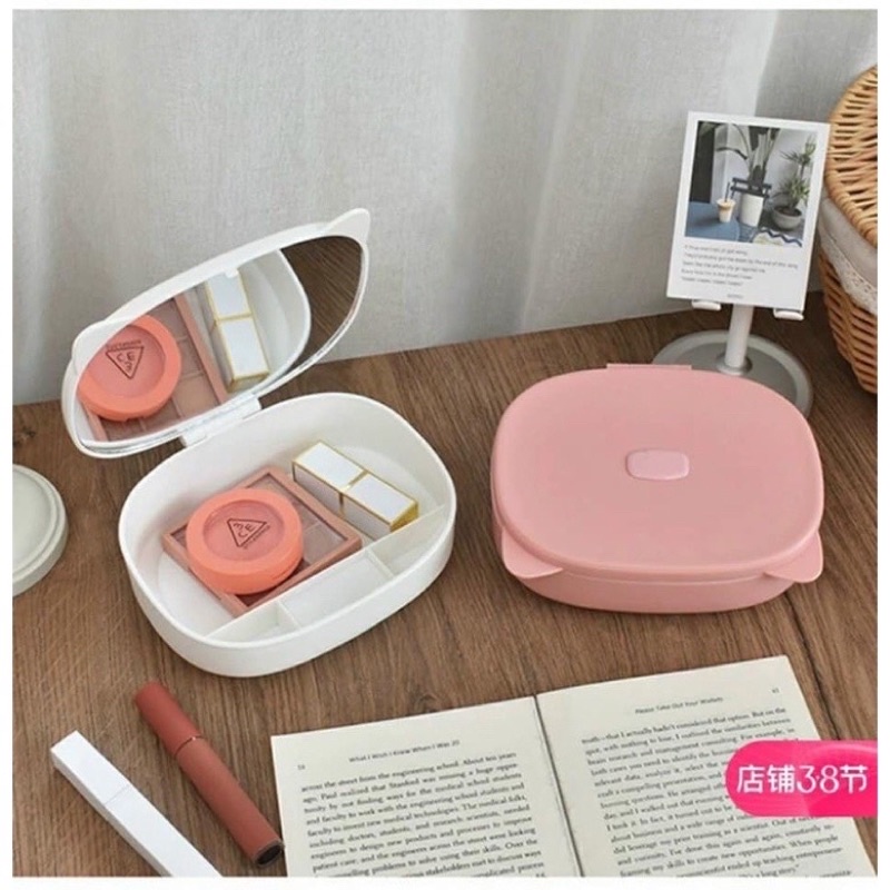 Hộp đựng Mỹ phẩm tai mèo có gương có thể gấp gọn nhé