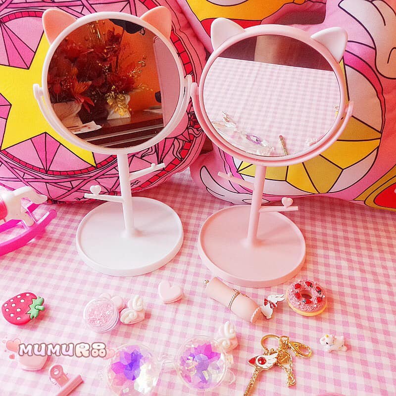 Gương tai mèo , thỏ để bàn trang điểm làm đẹp- kiếng soi phong cách Hàn Quốc tiểu thư xinh xắn