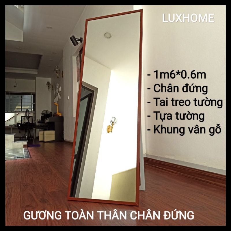 Nhà cửa & Đời sống > Trang trí nhà cửa > Gương || Gương Toàn Thân Có Chân Di Động 1m6*0.6m + Tựa Tường + Treo Tường + Khung Viền Vân Gỗ Đẹp, An Toàn. LUXHOME.Còn hàng