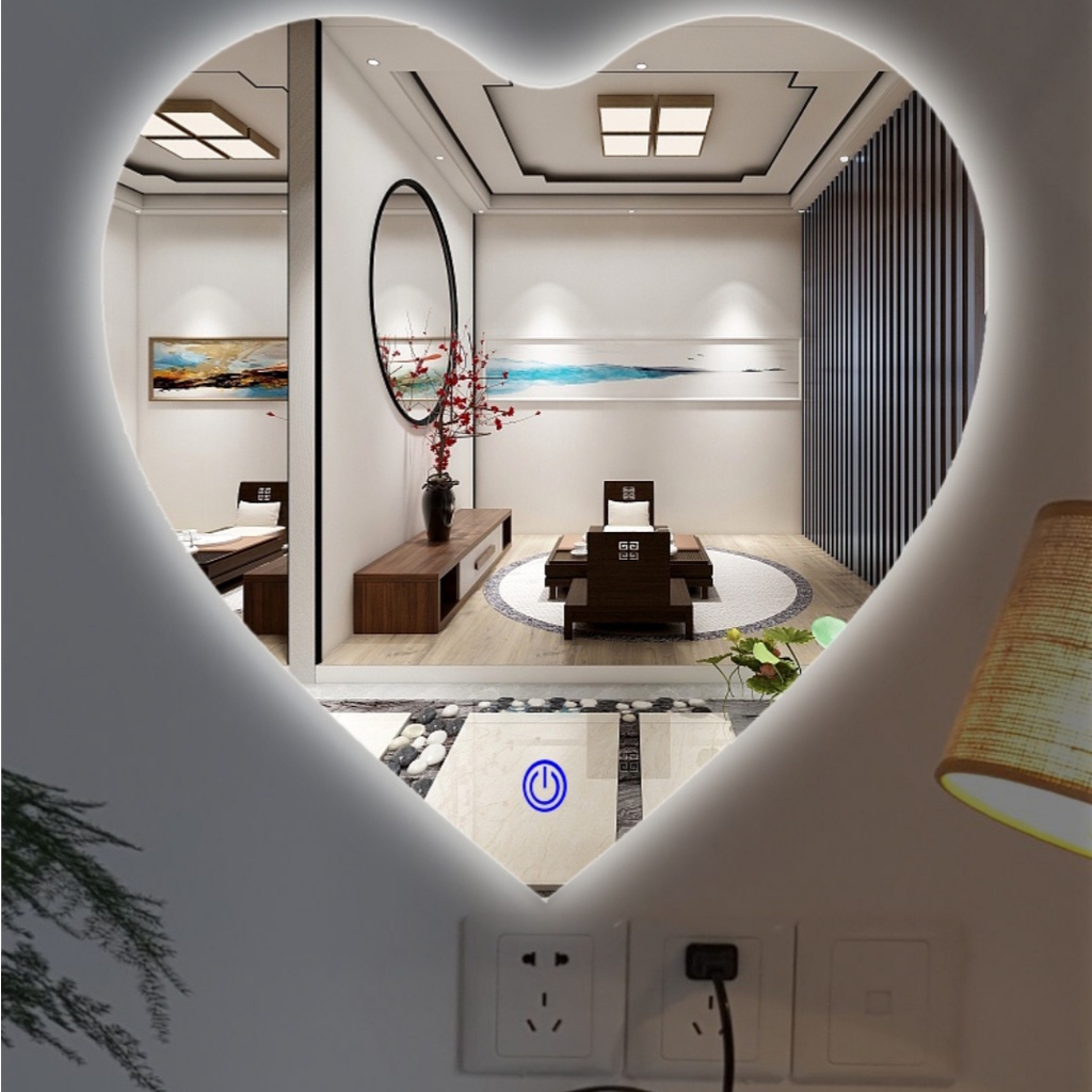 Gương trái tim decor treo tường VUADECOR led cảm ứng cao cấp (Full phụ kiện)