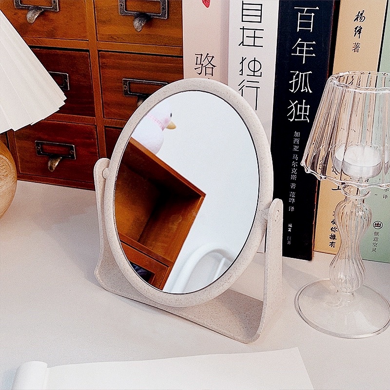 Gương Trang Điểm 2 Mặt Để Bàn Mini Chất Liệu Khung Nhựa Lúa Mạch Có Thể Xoay Được 360 Độ
