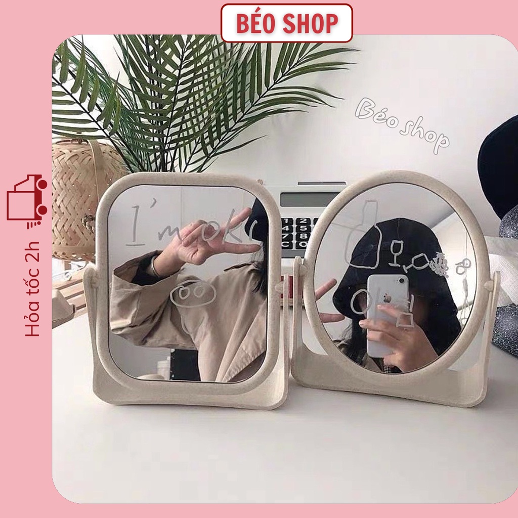 Nhà cửa & Đời sống > Trang trí nhà cửa > Gương || [Mã 253LIFESALE giảm 8% đơn 99K] Gương trang điểm 2 mặt để bàn xinh xắn xoay 360 độCòn hàng