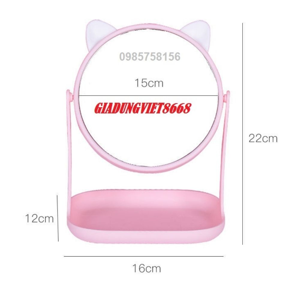 Gương trang điểm[ BẢO HÀNH 7 NGÀY LỖI NSX ] Gương công chúa tai mèo , tai thỏ ,tai chó để bàn xoay 360 độ có đế vuông