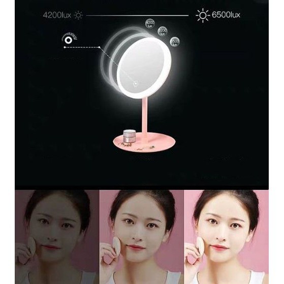 Gương cảm ứng với đèn Led có thể tăng giảm được độ sáng theo ý muốn (3 chế độ sáng: sáng trắng, sáng vàng nhẹ, sáng vàng đậm) giúp việc trang điểm của bạn luôn dễ dàng và rõ nét đến tận lỗ chân lông.