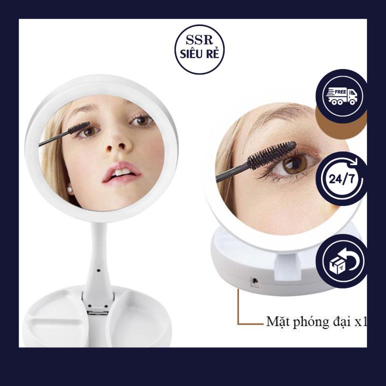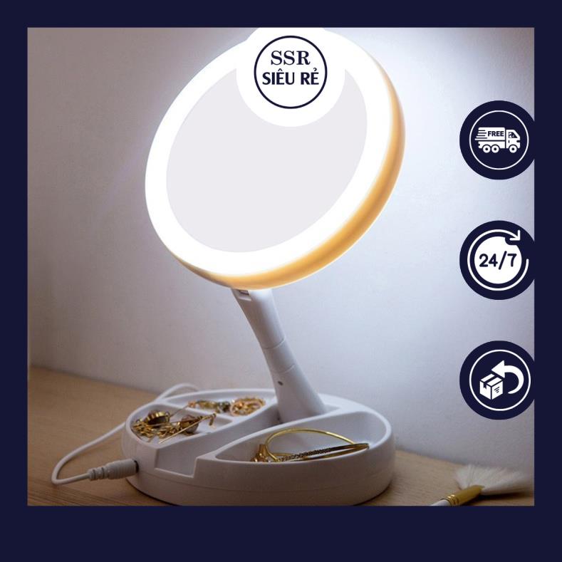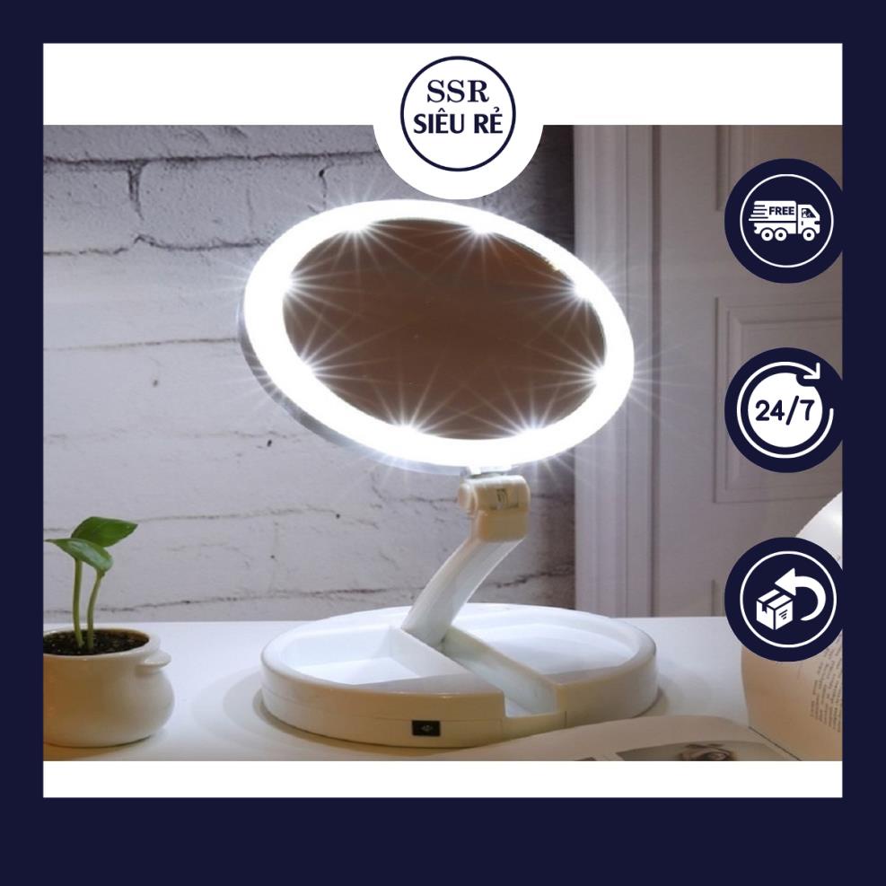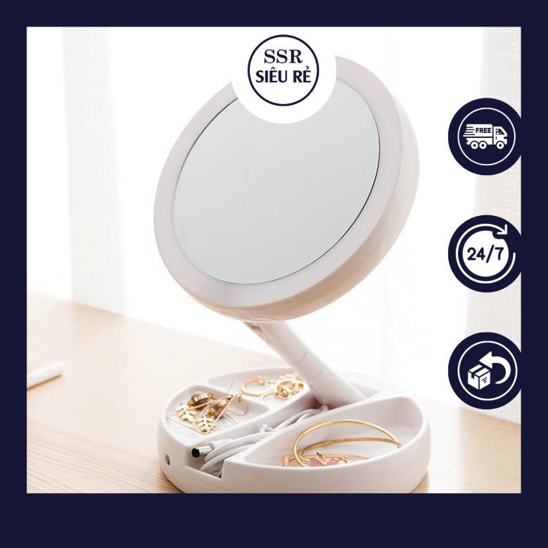 Gương Soi Trang Điểm Để Bàn Gấp Gọn Có Đèn LED