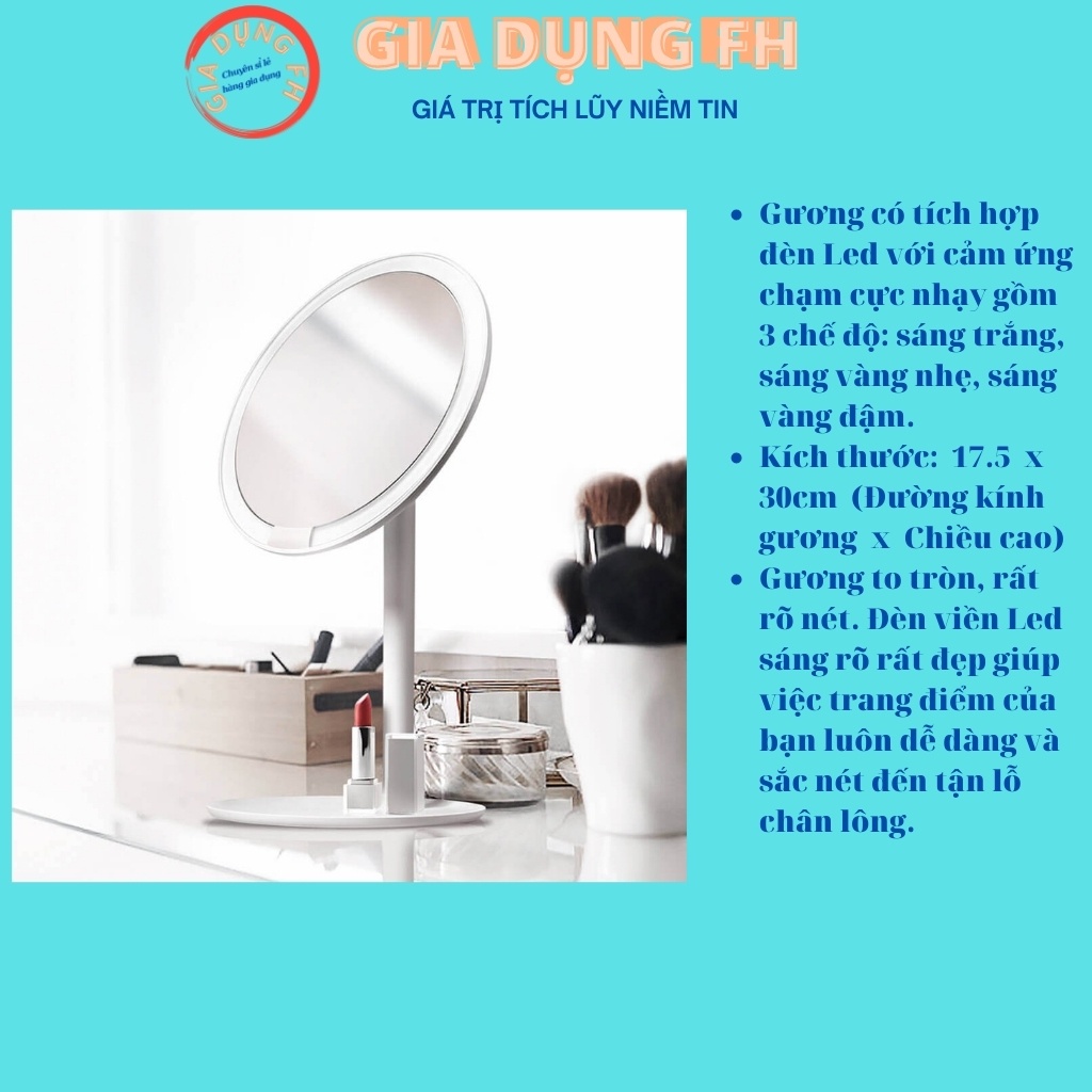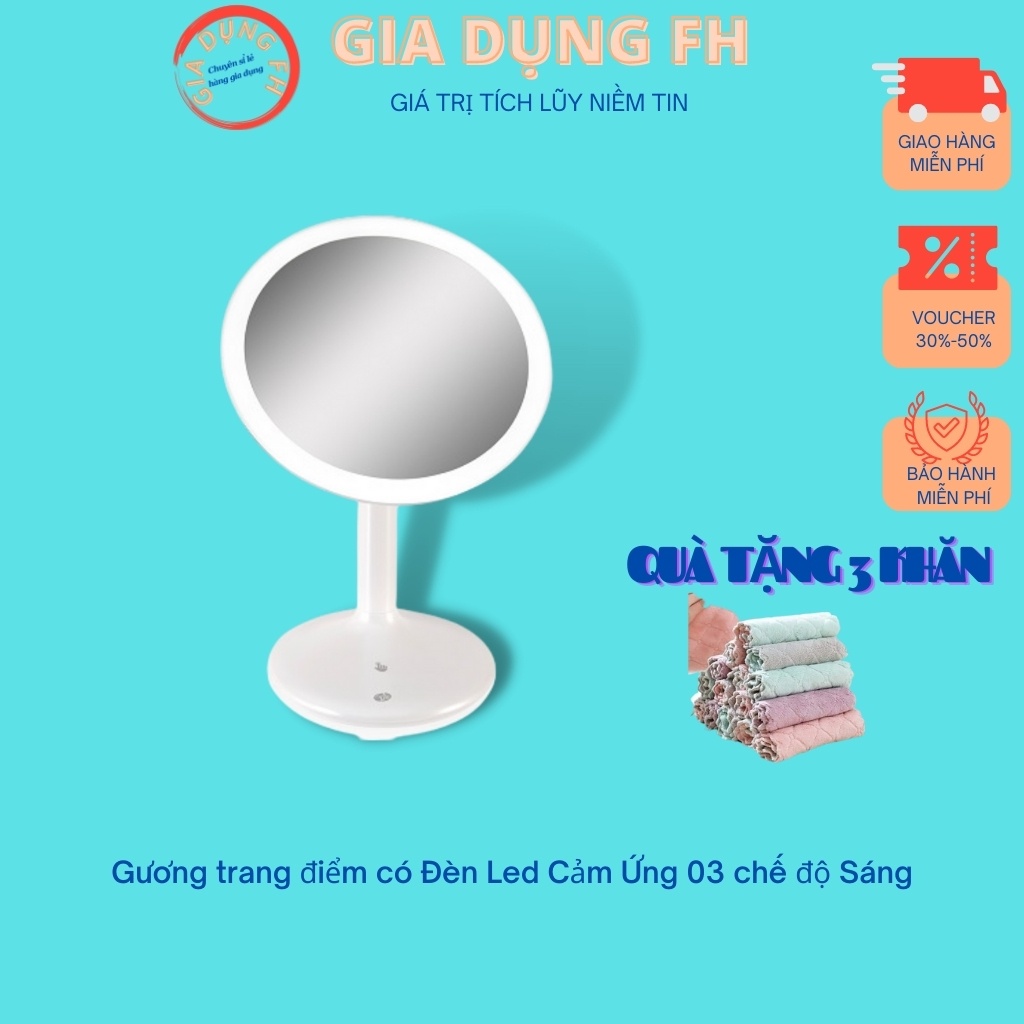 Gương trang điểm có Đèn Led Cảm Ứng 03 chế độ Sáng , Gương soi mặt làm đẹp Gia Dụng FH
