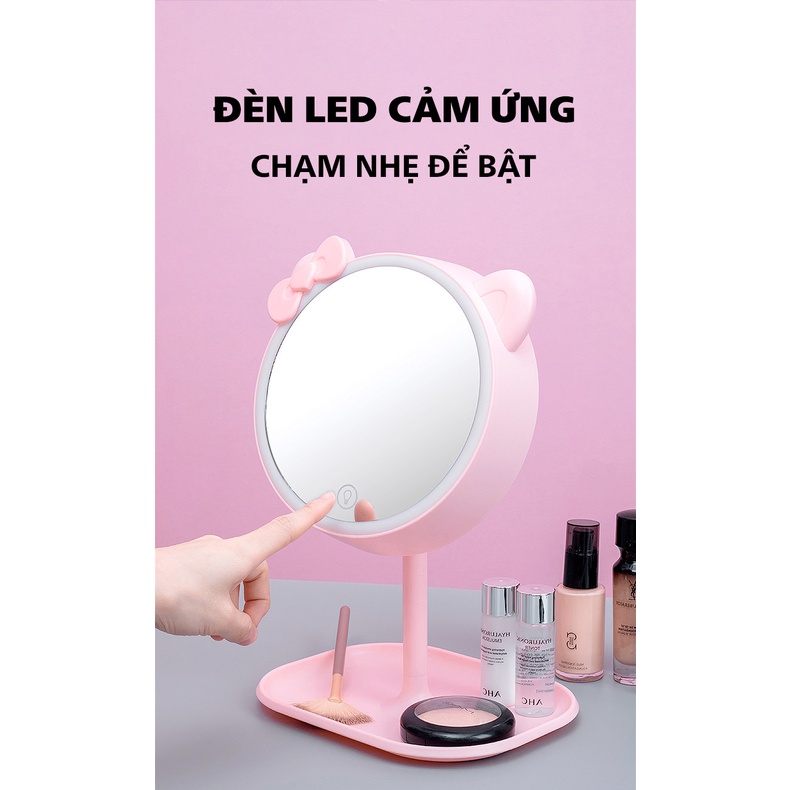 Gương trang điểm có đèn led cảm ứng 3 chế độ sáng Hello Kitty