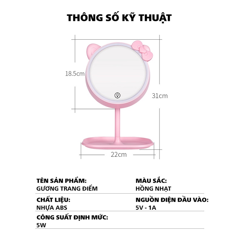 Giới thiệu Gương trang điểm có đèn led cảm ứng 3 chế độ sáng Hello Kitty