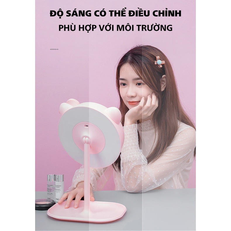 Gương soi trang điểm để bàn dùng dây Cáp hoặc Pin tiểu nên rất tiện lợi cho các chị em trong việc mang theo làm đẹp bất cứ đâu!