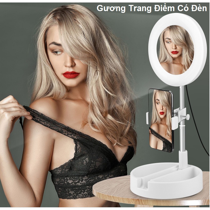 Đèn Livestream Đa Năng để bàn còn được trang bị gương soi giúp bạn trang điểm theo ý muốn.