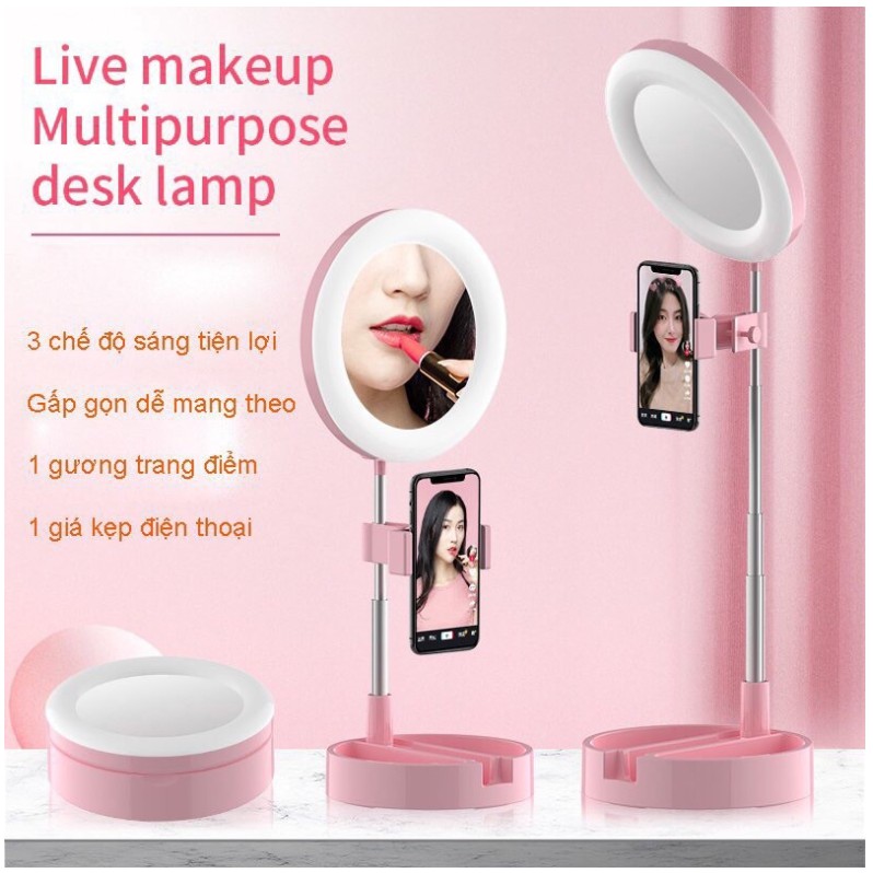 Đèn Livestream Đa Năng Để Bàn G3 Kèm Gương Trang Điểm Siêu SángThiết kế nhỏ gọn, hiện đại, dễ dàng mang theo.