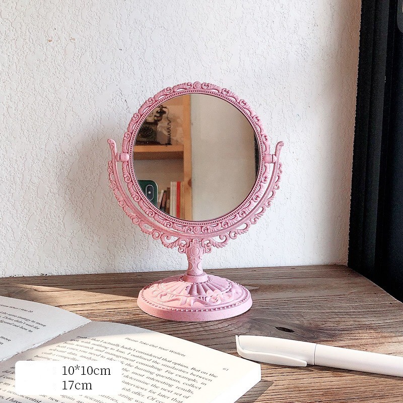 Gương Trang Điểm Để Bàn 2 Mặt Vintage Phong Cách Tiểu Thư Cổ Điển - Tặng sticker trang trí
