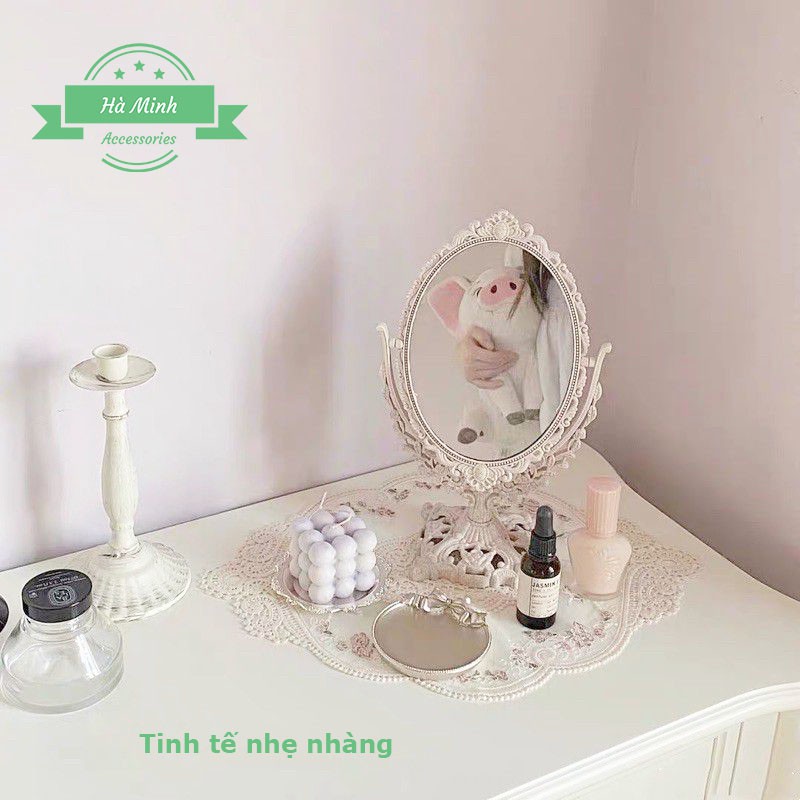 Nhà cửa & Đời sống > Trang trí nhà cửa > Gương || Gương trang điểm để bàn 2 mặt vintage phong cách tiểu thư công chúa ( có zoom x3)Còn hàng