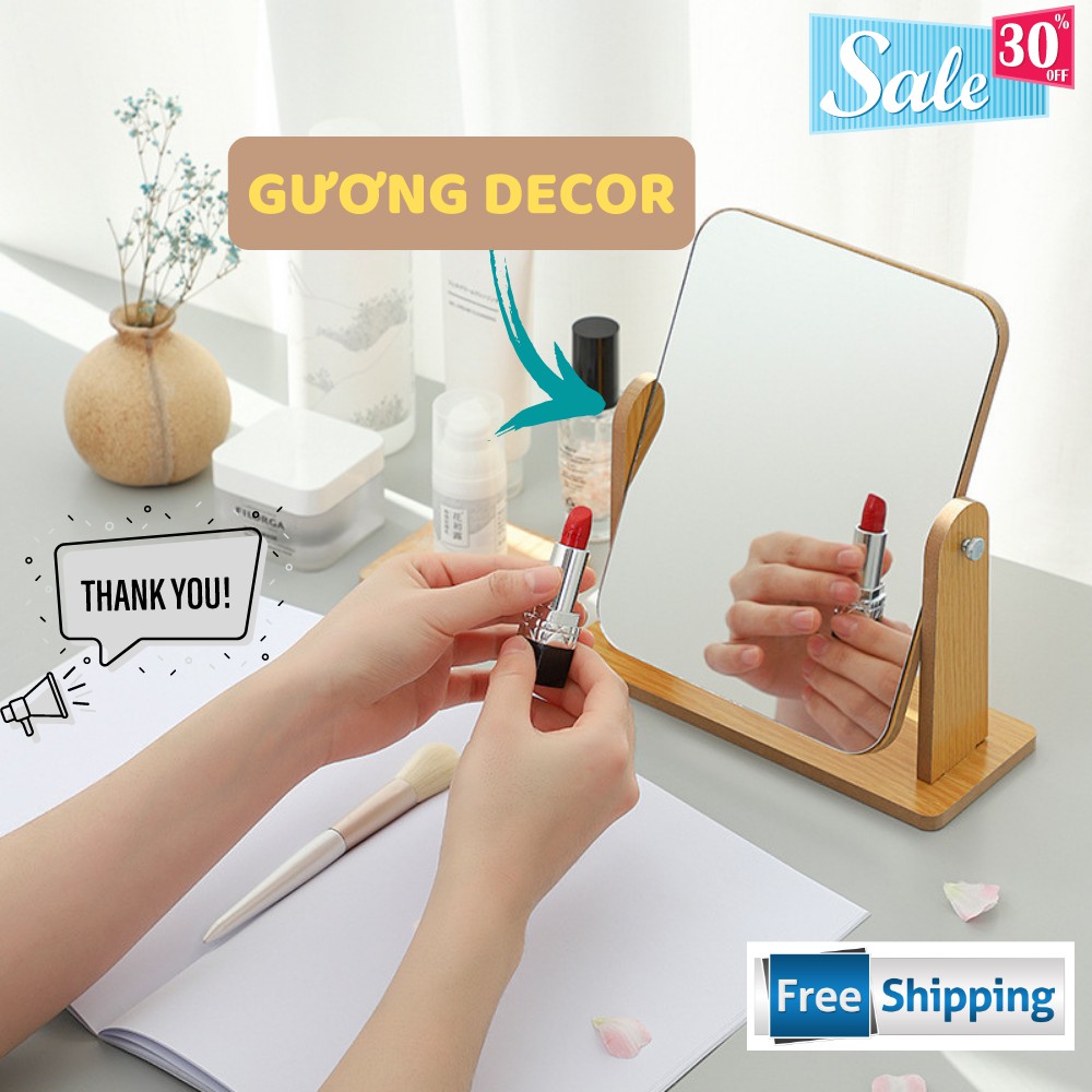 Nhà cửa & Đời sống > Trang trí nhà cửa > Gương || Gương trang điểm để bàn bằng gỗ xoay 360 độ phong cách hiện đại TIME.HOMECòn hàng
