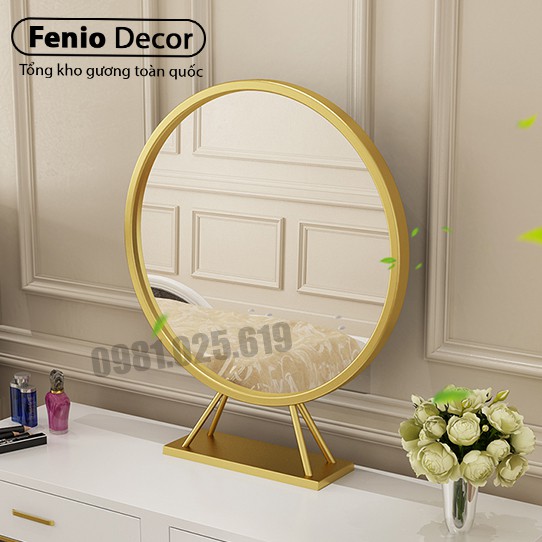 Gương để bàn trang điểm Fenio Decor cỡ lớn dáng tròn hoàn thiện tỉ mỉ cao cấp