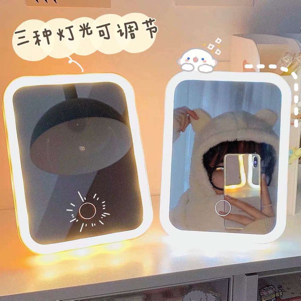 Nhà cửa & Đời sống > Trang trí nhà cửa > Gương || Gương trang điểm để bàn cảm ứng, gương đèn led 3 chế độ sáng kèm cáp sạc USB trang trí phòng ngủ URI DECORCòn hàng