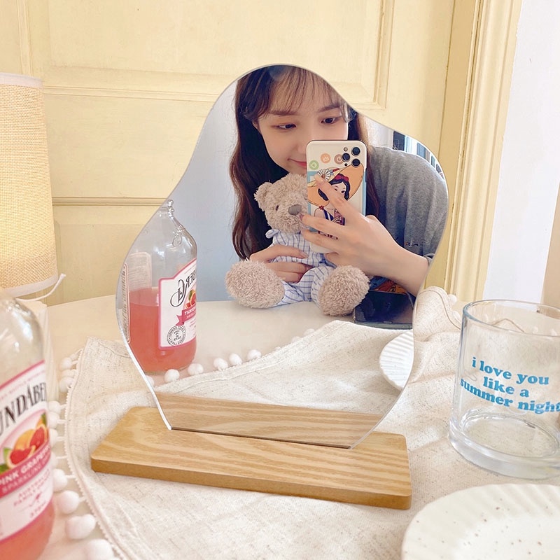 Gương Trang Điểm Để Bàn Có Đế Gỗ Phong Cách Hàn Quốc