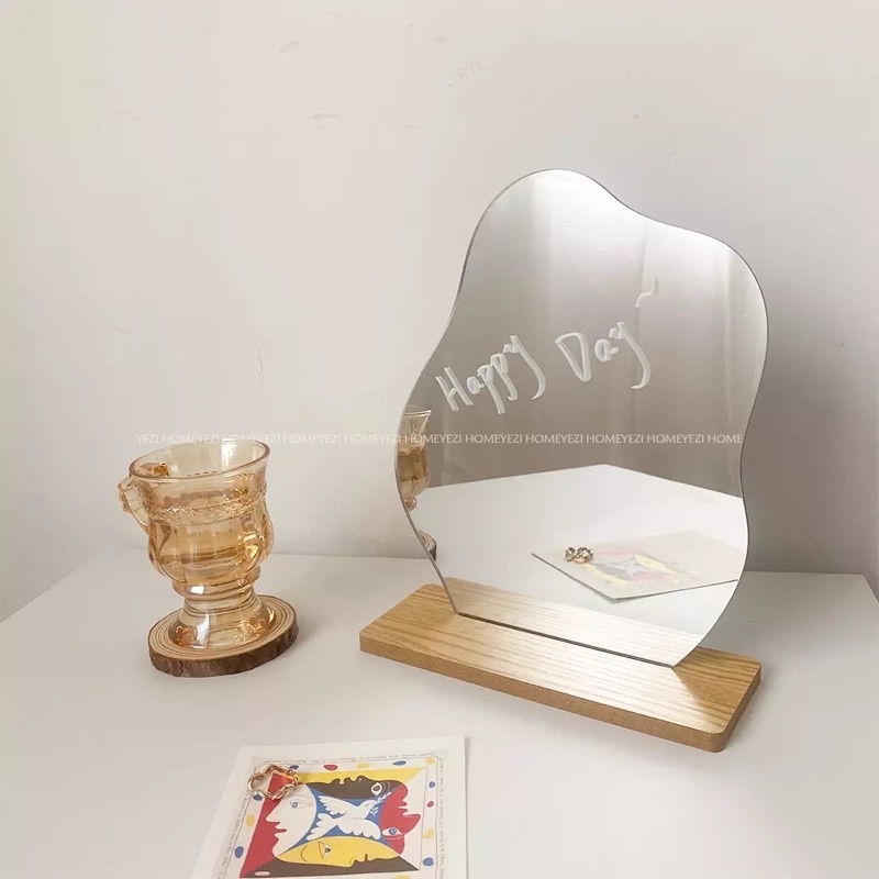 1. Chất liệu: Gương acrylic và đế gỗ. Gắn phần đường thẳng của gương vào khe đế, gương trong suốt không bị méo, thiết kế đơn giản, trông hoàn hảo và thích hợp để sử dụng hoặc trang trí.