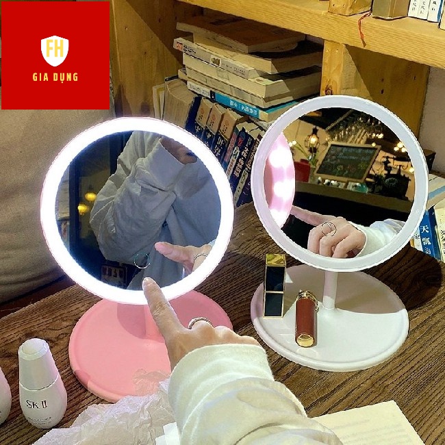 Gương trang điểm để bàn có đèn led, đèn led cảm ứng với 3 chế độ sángGương led trang điểm cảm ứng cao cấp được thiết kế dạng gương tròn để phục vụ cho mục đích trang điểm và tích hợp đèn led bo viền có thể sử dụng trong điều kiện trời tối.Sở hữu chiếc gương trang điểm đèn led này bạn sẽ có thể thoải mái make up trong bất cứ điều kiện nào, luôn tự tin khi đã chuẩn bị cho mình vẻ ngoài ưng ý.