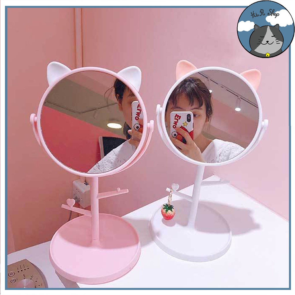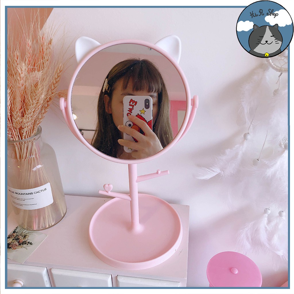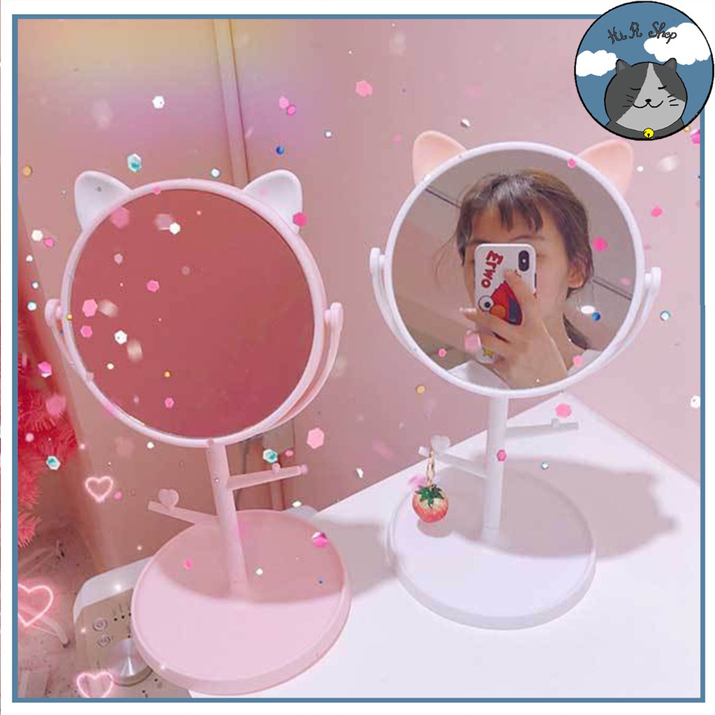 Gương Trang Điểm Để Bàn Hình Tai Mèo Cute Dễ Thương Đáng Yêu