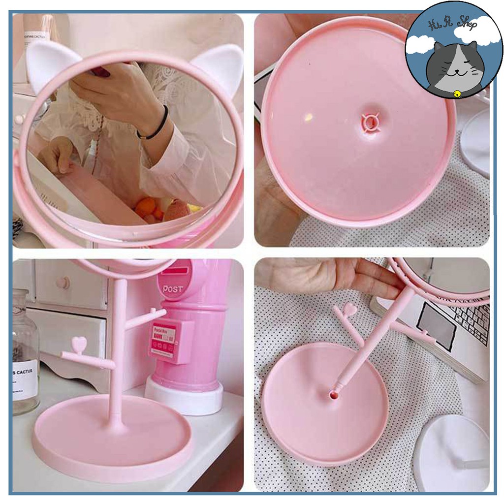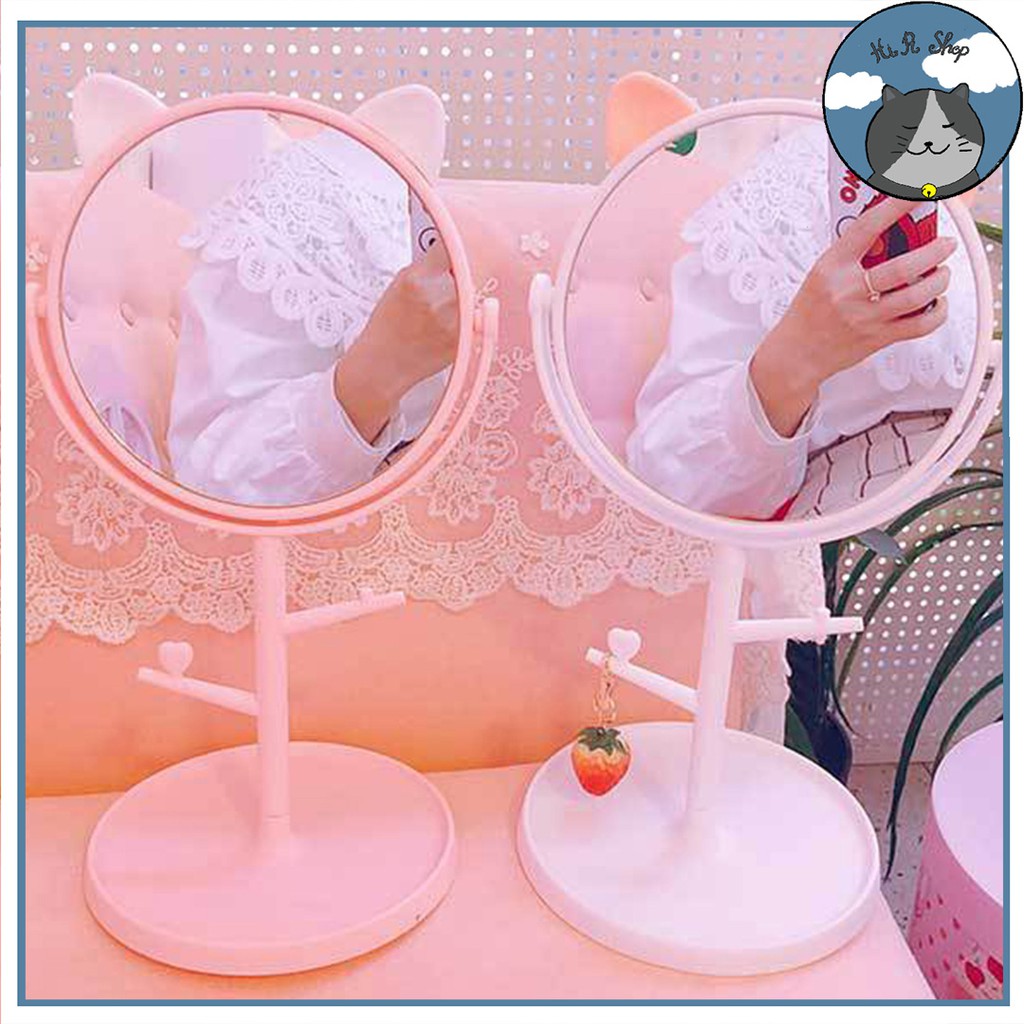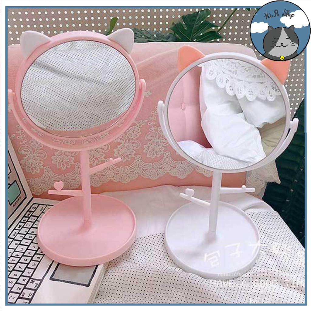 Gương Trang Điểm Để Bàn Hình Tai Mèo Cute Dễ Thương Đáng Yêu