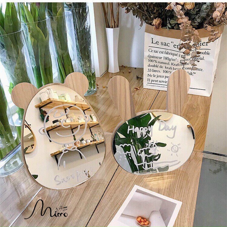 Gương trang điểm để bàn khung gỗ hoạt hình cute tai chuột thỏGương soi để bàn trang điểm màu sắc trang nhã, độ sắc nét cao, hình ảnh chân thực.