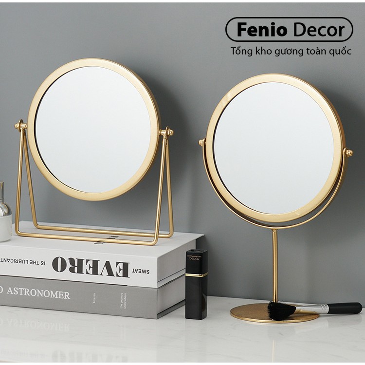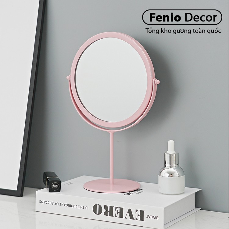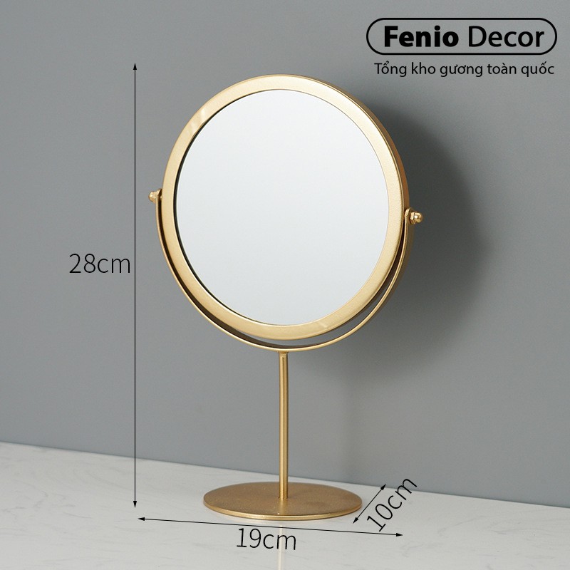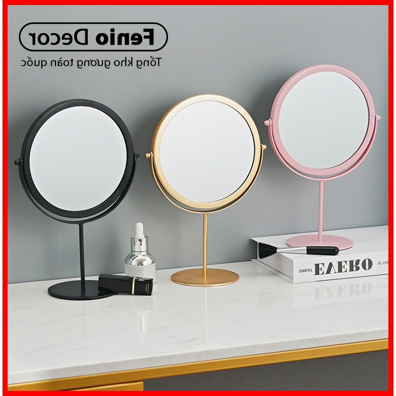 Một sản phẩm mới của Tổng kho gương Fenio DecorGương trang điểm để bàn để bàn hoặc các chỉ em có thể cẩm nó mang đi khắp mọi nơi trong nhà. Chất lượng chủ yếu của gương là khung thép sơn tĩnh điện cao cấp. Vậy nên cả khung lẫn màu sắc sơn rất bền bỉ, màu luôn tươi sáng. Gương được thiết kế cơ động, với vòng xoay 360 độ, các chị em có thể xoay gương lên xuống, cân chỉnh mọi góc độ phù hợp. Với thiết kế hiện đại, gương trang điểm mini còn là một món đồ decor phù hợp với những không gian nội thất hiện đại sang trọng.
