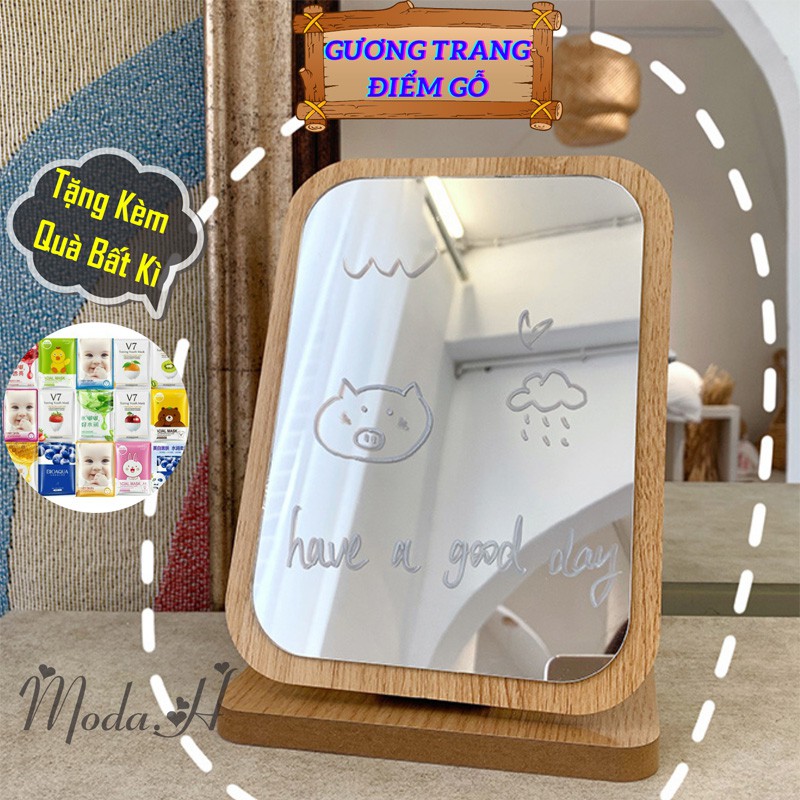 Nhà cửa & Đời sống > Trang trí nhà cửa > Gương || Gương trang điểm để bàn khung gỗ cao cấp phong cách Hàn QuốcCòn hàng