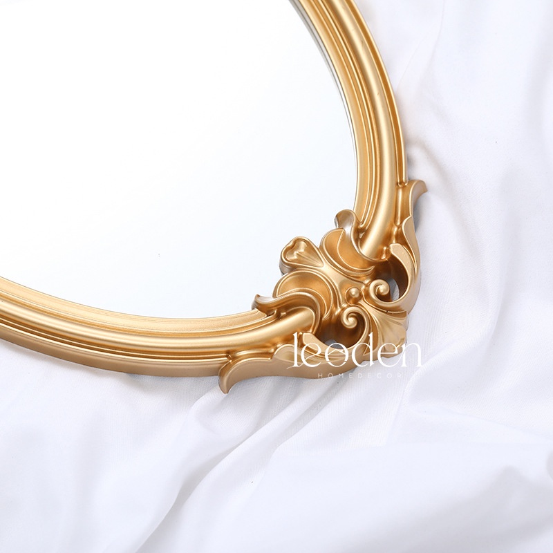 Gương trang điểm để bàn màu vàng phong cách vintage châu Âu, gương vàng cổ điển – LEODEN Decor