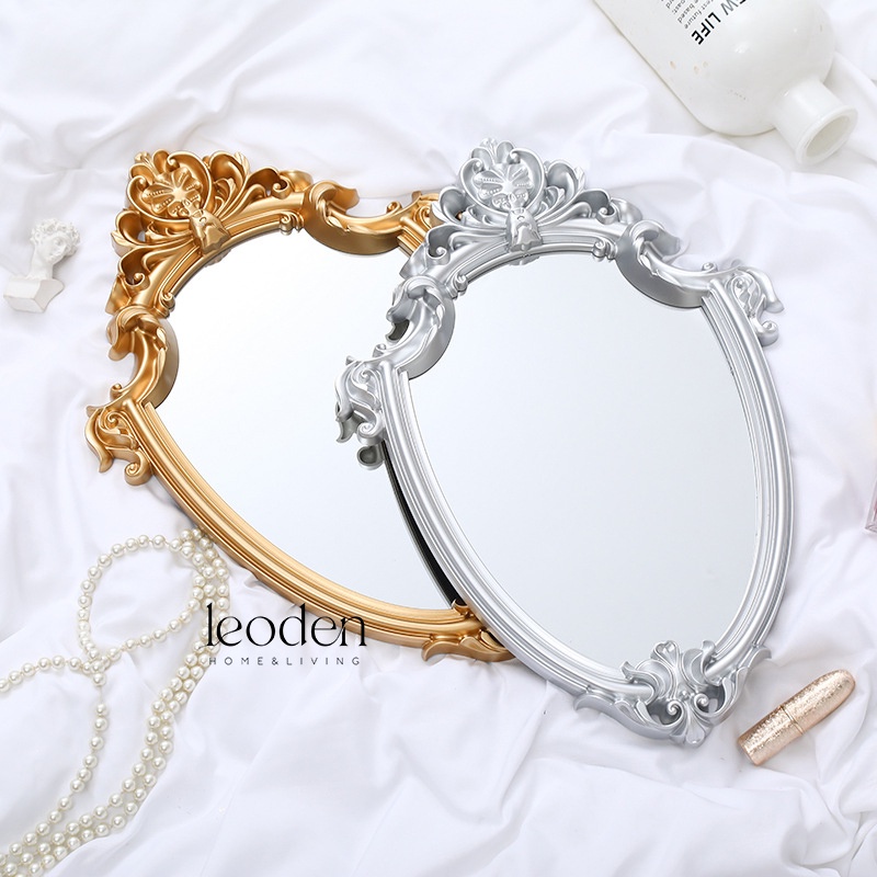 Nhà cửa & Đời sống > Trang trí nhà cửa > Gương || Gương trang điểm để bàn màu vàng phong cách vintage châu Âu, gương vàng cổ điển – LEODEN DecorCòn hàng